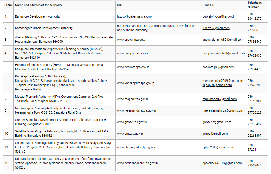 The Planning Authority function as per the provisions of the KTCP Act 1961. As per Act, the Authorities gives technical opinion for the conversion of agricultural lands, accords approval for development of layouts and Development Plans and issue Commencement Certificate for construction of buildings.